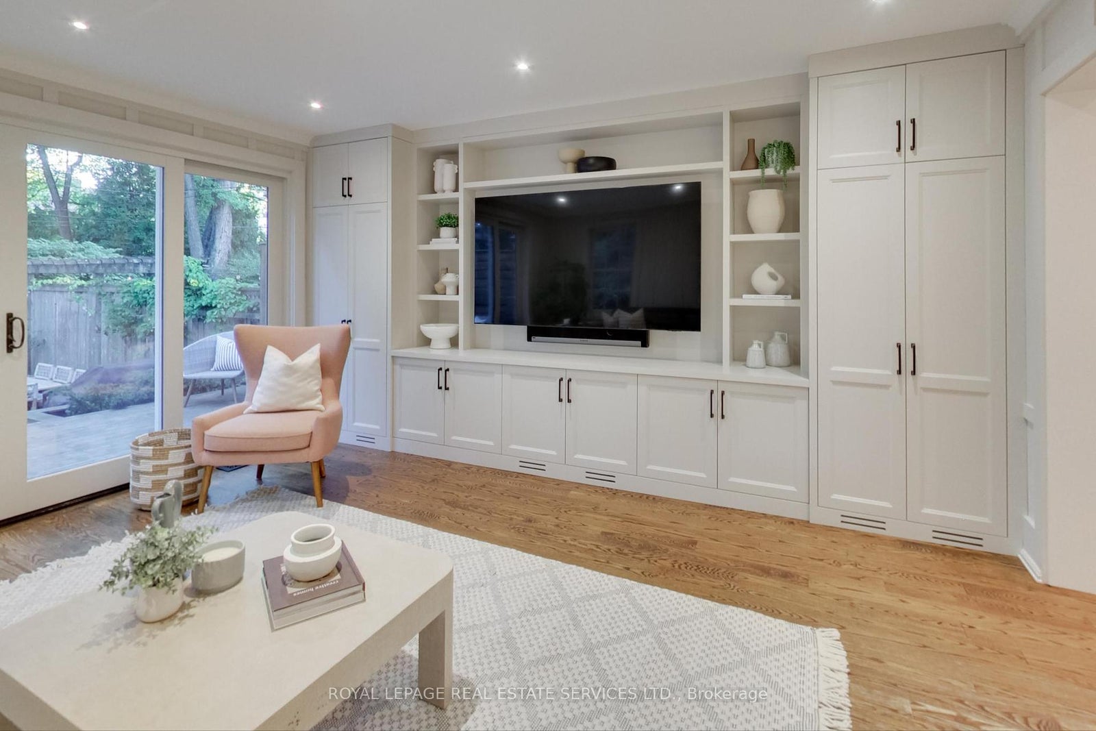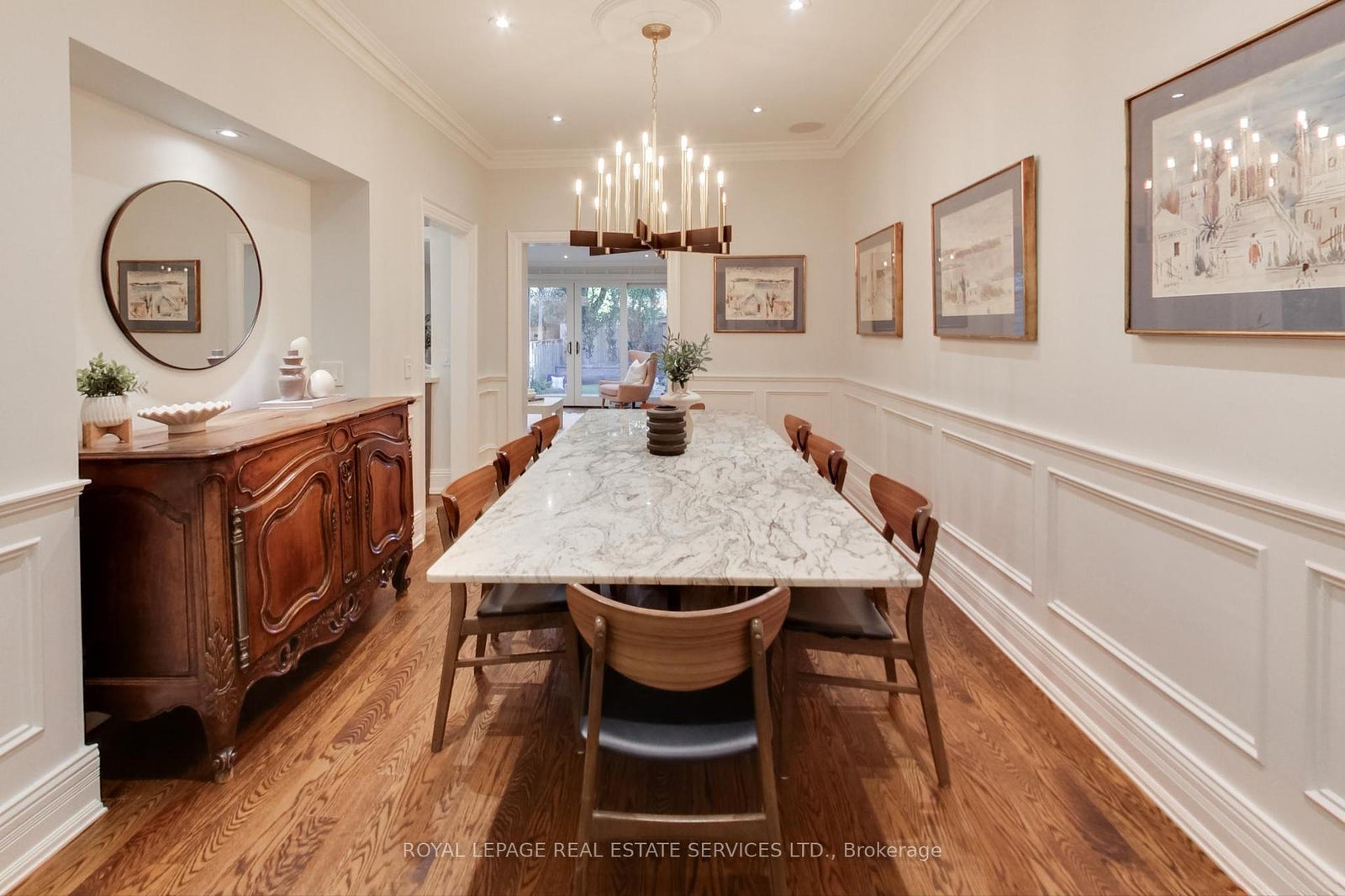 Welcome to 55 Walmsley Blvd, a meticulously renovated and well-maintained detached home on one of Deer Parks most desirable streets. Behind its classic façade, complete with a charming front porch, lies a perfect blend of classic character and modern luxury. The sun-filled living room with fireplace flows seamlessly into a generous dining area, while the gourmet chefs kitchen with breakfast bar and the adjoining family room with floor-to-ceiling windows open onto a landscaped backyard oasis featuring a deck, raised planter beds, custom lighting, irrigation, and a powered shed. Upstairs, the king-sized primary suite includes a spacious sitting room or office with vaulted ceilings and a private deck nestled among mature trees. This sanctuary is enhanced by a skylit spa-inspired ensuite with heated floors, double rain showers, dual vanities, and extensive wall-to-wall custom closets. Two additional well proportioned bedrooms with attractive, functional built-ins and a luxe family bath complete the second level. The lower level, with separate side entrance, offers high ceilings, heated floors, a 3-piece bath, laundry room, kitchenette, and a private den with a door ideal for an in-law or nanny suite. With high quality custom millwork in almost every room, the home has ample storage for a growing family or a downsizing move. With legal front pad parking, extensive upgrades, and close proximity to the Belt Line Trail, Oriole Park, Yonge Street shops, dining, transit, and Torontos top public and private schools, this Deer Park gem perfectly combines comfortable family living with elevated entertaining in one of the citys most convenient locations.