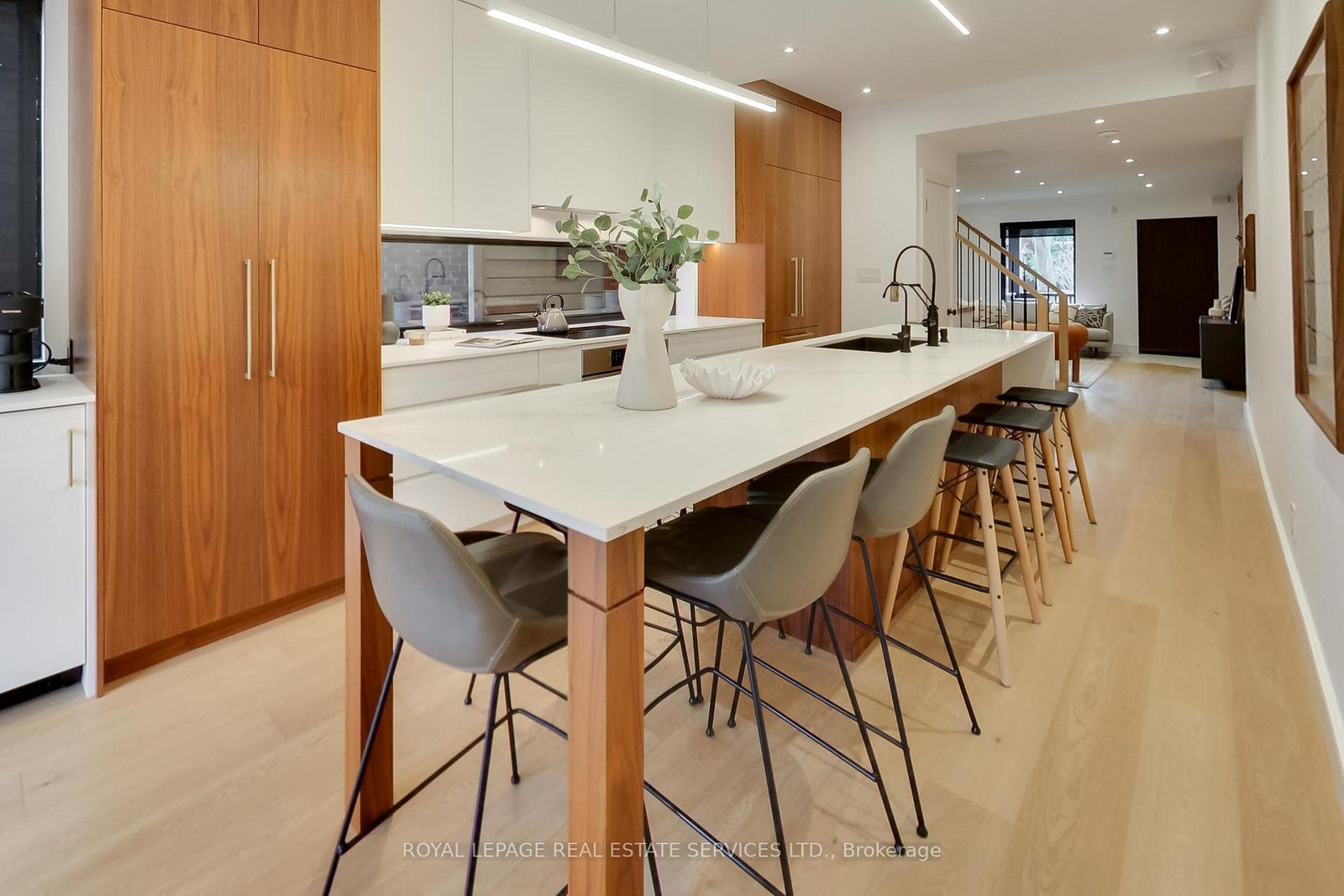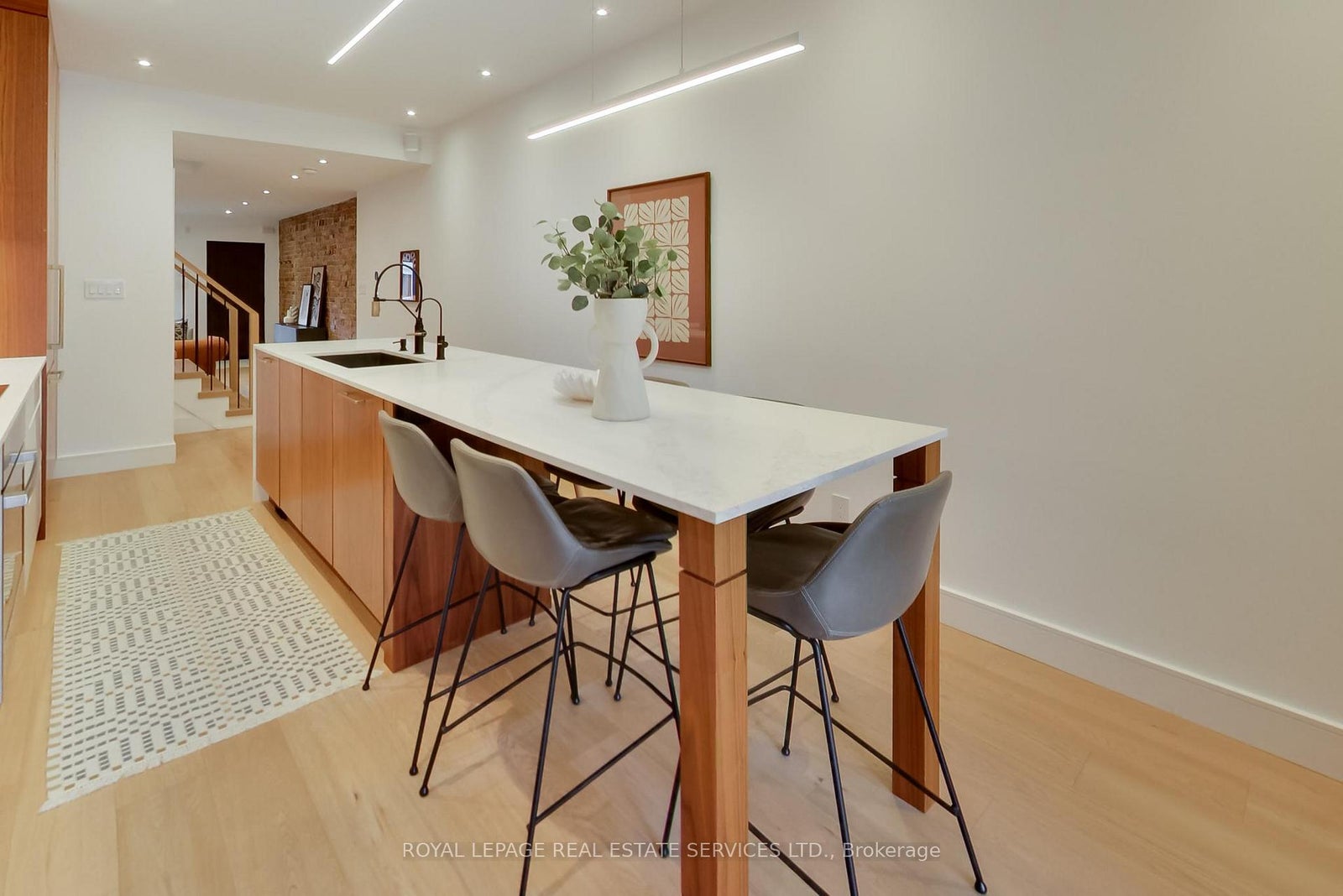 In the heart of the Annex, this exquisitely redesigned three-storey single-family home blends refined design with exceptional everyday livability. Gutted to the studs and thoughtfully reimagined by Palmerston Designs in 2019, it was crafted for elevated family living with warmth, function, and style.The main floor makes an unforgettable first impression with wide plank white oak floors throughout, soaring ceilings, exposed brick, and a rebuilt staircase with sleek modern railings. The heart of the home is a stunning chef's kitchen with a dramatic 12-foot island, integrated appliances, induction stove, drinks fridge, deep farmhouse sink, multiple floor-to-ceiling pantries, and added windows that fill the space with light. A powder room and coat closets complete this level. Sliding glass doors open to a tiered deck and an extraordinarily deep private garden beneath a mature tree canopy, creating a rare urban retreat for entertaining and quiet family moments alike.The upper floors offer an outstanding family layout. The second floor features two spacious bedrooms, each with a dedicated bathroom, a separate family room, plus a laundry room. The entire third floor is devoted to a luxurious primary retreat with exposed brick, vaulted ceilings with exposed architectural beams, abundant natural light, a walk-in closet, spa-inspired ensuite, private balcony, and a flexible lofted space ideal for a home office, lounge, nursery, or creative studio. The 2nd floor family room and 3rd floor loft space could be enclosed for additional bedrooms if so desired. The finished lower level, with tall ceilings and a separate entrance, is set up as a dream home gym and offers incredible versatility. A rare opportunity to own a truly design-forward family home on a deep lot in one of Toronto's most coveted neighbourhoods. Steps to Dupont Subway Station, Jean Sibelius Park, top rated public and private schools and the bustling retail of Bloor Street plus fine dining on the Dupont Strip.